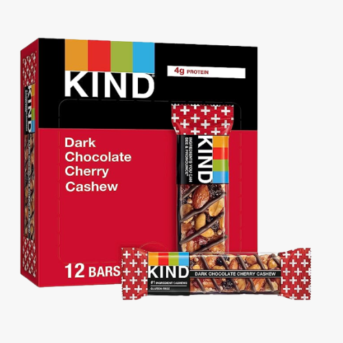 - Contains 12 (1.4 oz) KIND Dark Chocolate Cherry Cashew bars