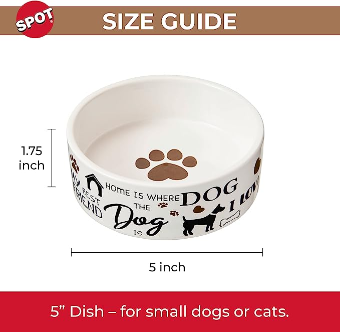- POPULAR DESIGNS & PERFECT SIZES: Pick between a number of stylish designs and sizes, find something perfect for your dog our cat. 7” Dog Dish, perfect for Small and Medium Dogs, 5” Dog Dish – for even smaller dogs or cats, and a 6” oval cat dish – for cat food.