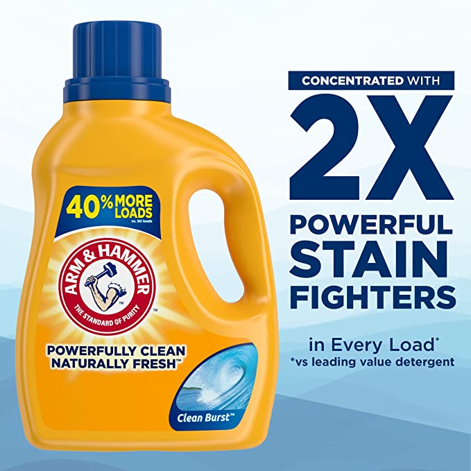 • One 105 fl oz bottle of ARM & HAMMER Clean Burst Liquid Laundry Detergent cleans 105 medium loads when used as directed