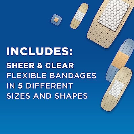 • 280 count box of Band-Aid Brand Sterile Adhesive Bandage Family Variety Pack includes sheer & clear flexible bandages in 5 different sizes and shapes. Covering minor cuts, scrapes & burns protect you against dirt & germs that may cause infections